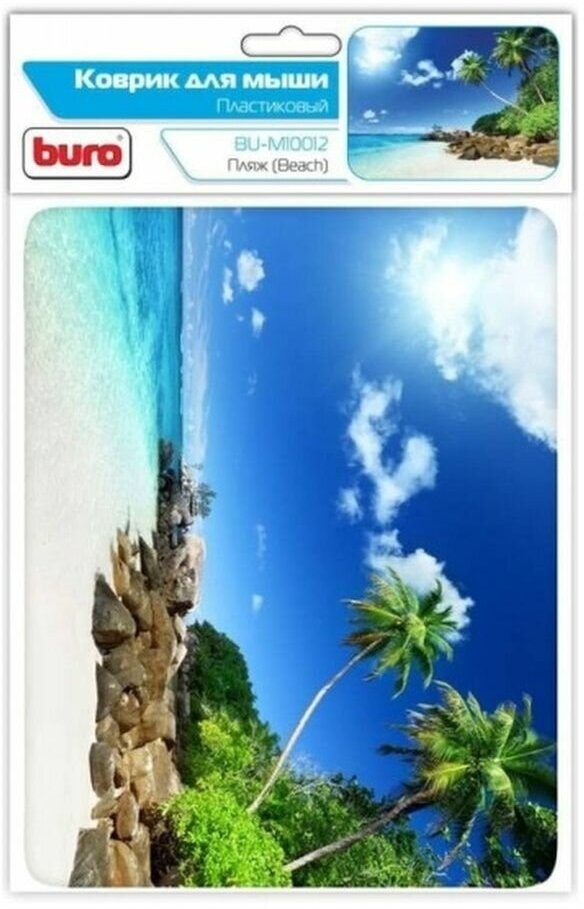 Коврик для мыши Buro BU-M10012 мини, резиновая основа, 230x180x2мм, рисунок пляж интересное: