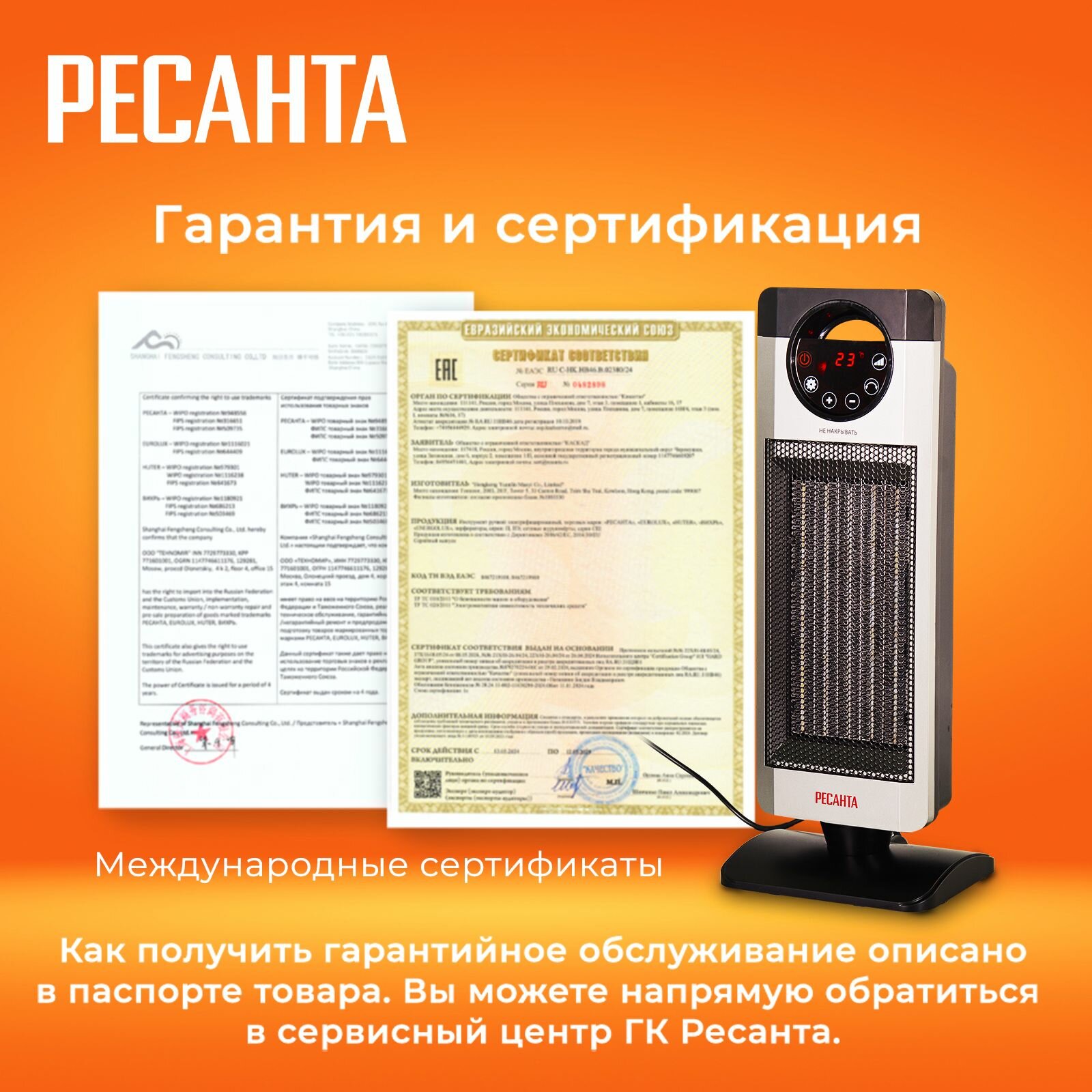 Resanta Тепловентилятор Ресанта ТВК-3 67/2/5 { 220-240 В, 50 Гц, Мощность 2 кВт, 2 режима работы, LED - ДисплейКерамический ТЭН, Защита от перегрева }