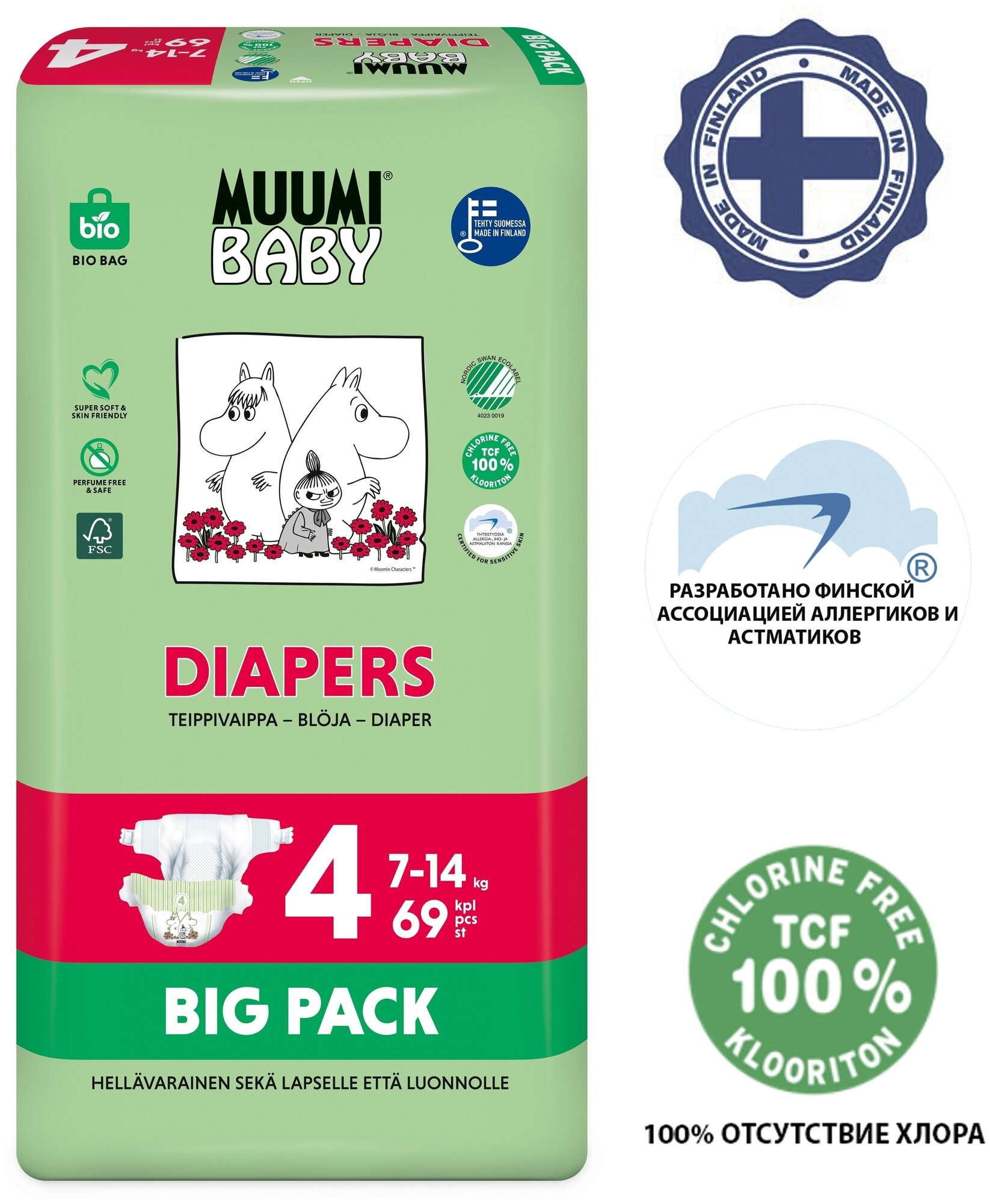 Купить MUUMI BABY Эко Подгузники органические, натуральные, биоразлагаемые, детские №4, 7-14 кг, 69 шт