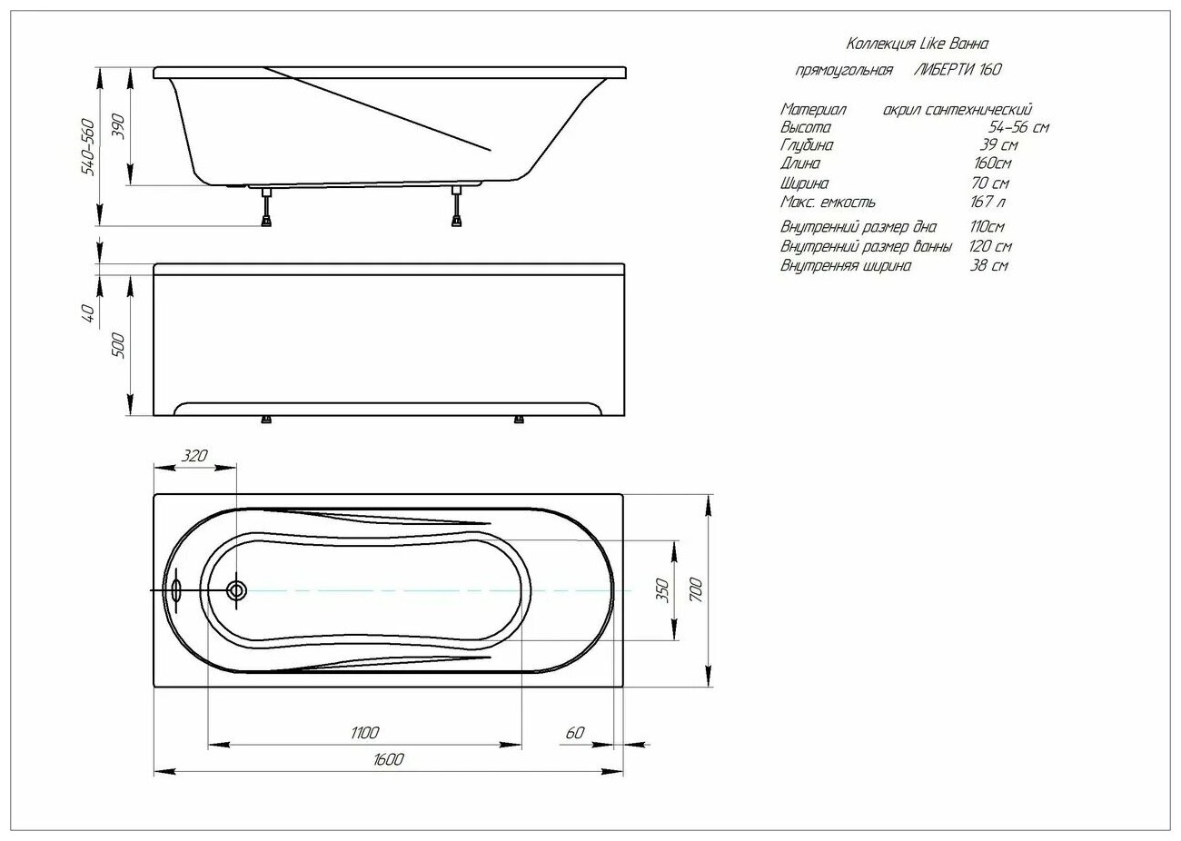 СохранитьВанна акриловая Aquatek Либерти BER160-0000001 акрил 160х70см интересное: