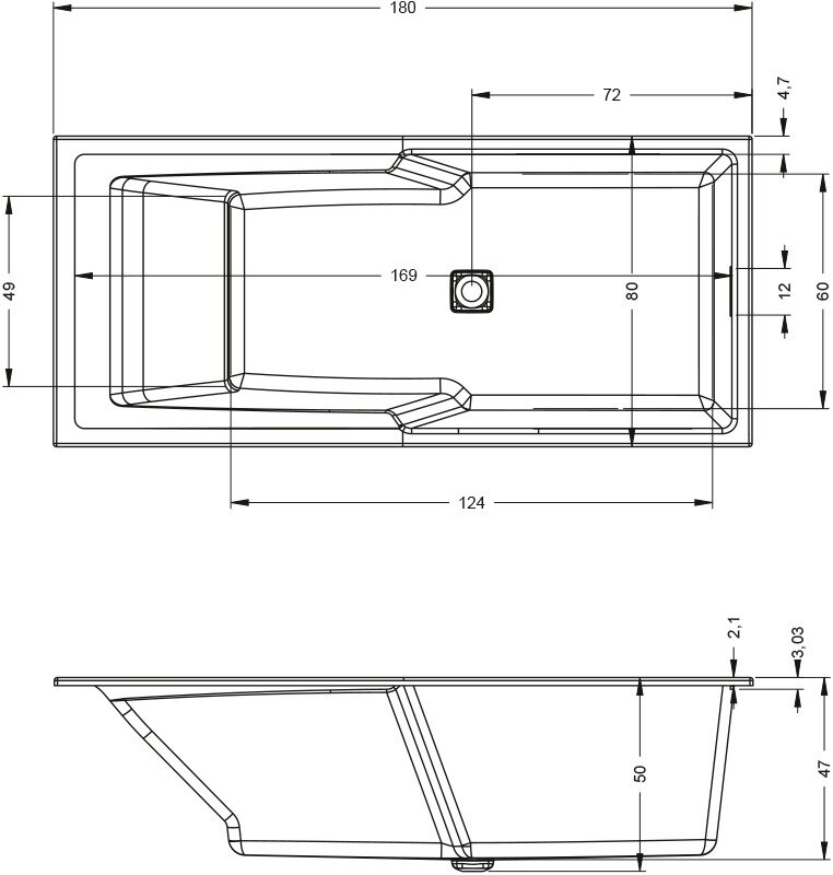 Акриловая ванна RIHO STILL SHOWER 180x80, B103001005 (BR0500500000000)