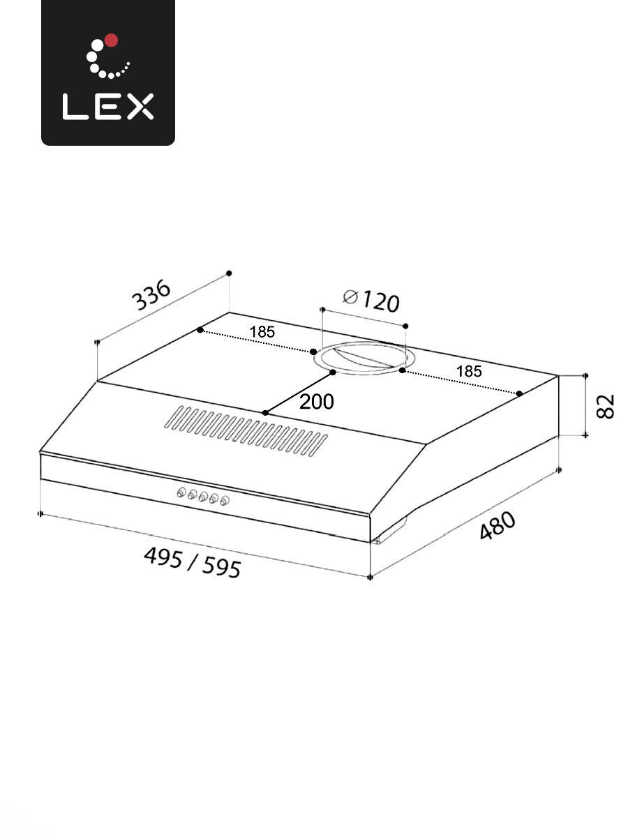 Вытяжка козырьковая Lex S 500 нержавеющая сталь управление: кнопочное (1 мотор)