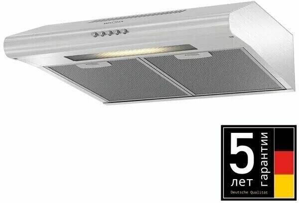| Дополнительная информация | рекомендованная площадь кухни до 8 кв.м; количество ламп освещения: 1; мощность лампы: 40 Вт; высота установки над электрическими варочными поверхностями: 65 см; высота установки над газовыми варочными поверхностями: 75 см |