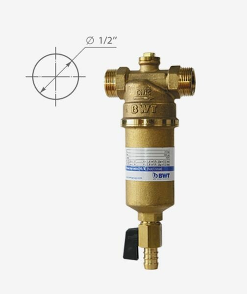 Предфильтр BWT Protector Mini для горячей воды прямая промывка 1/2 НР(ш) х 1/2 НР(ш)