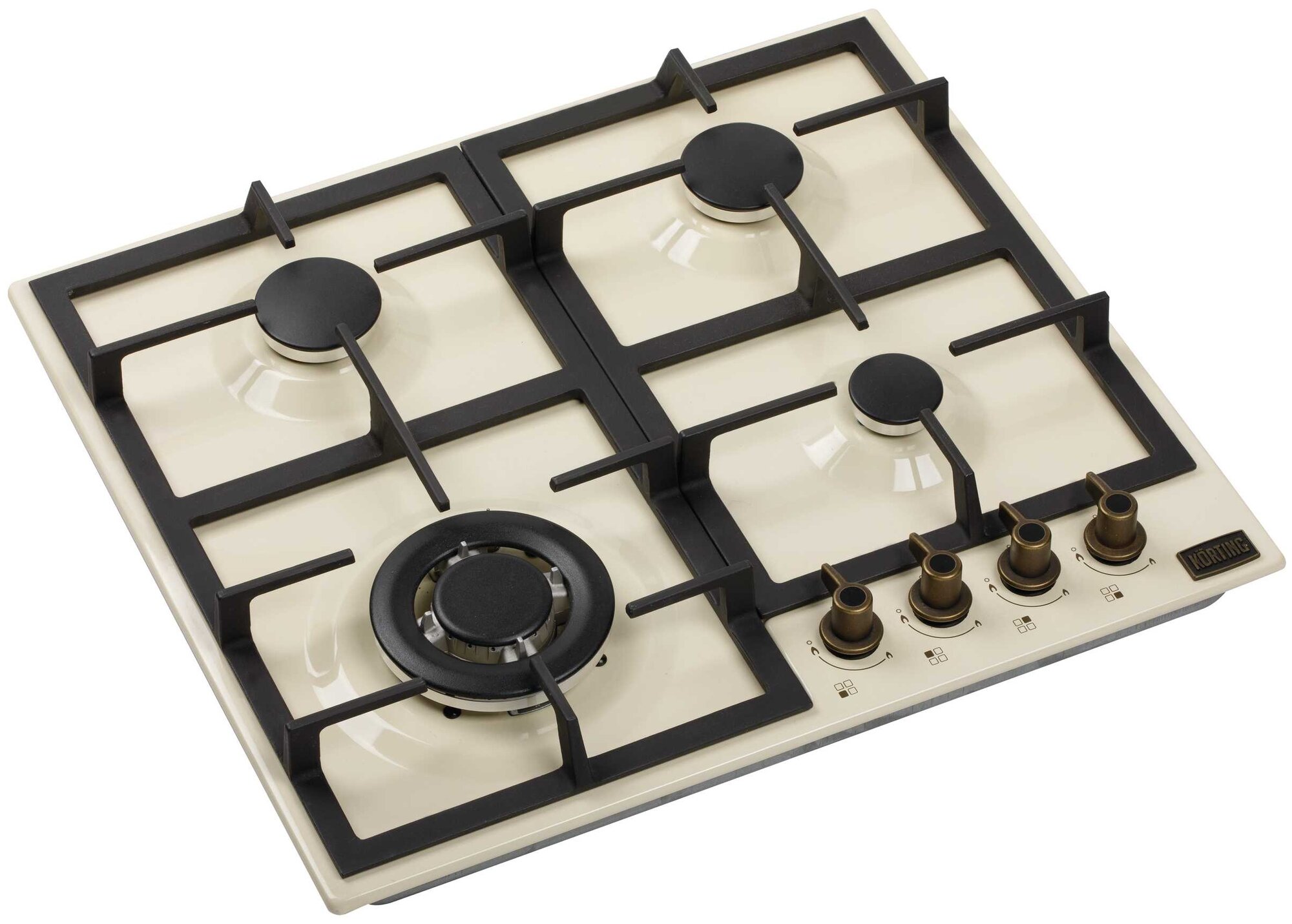 Купить Встраиваемые газовые панели Korting/ Газ, Calabria, 60x51 см, газовая, независимая, электроподжиг, газ-контроль, чугунные решетки, чугунный адаптер для WOK-конфорки и адаптер для кофейника, слоновая кость, цвет ручек-бронза