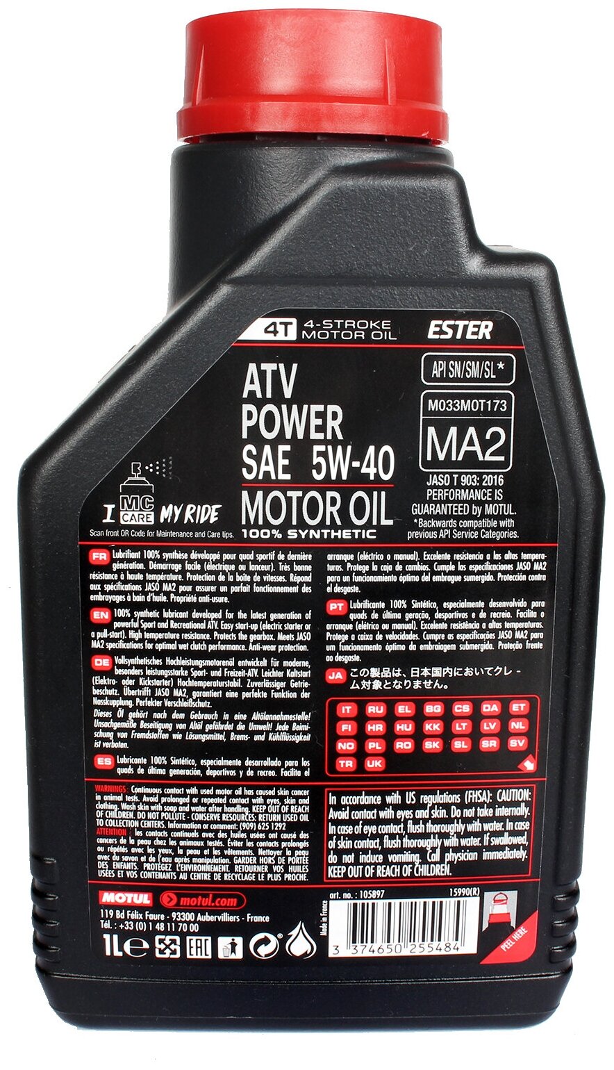 MOTUL 105897 Масло Motul ATV POWER 4T 5W40 моторное, 100% синтетическое для