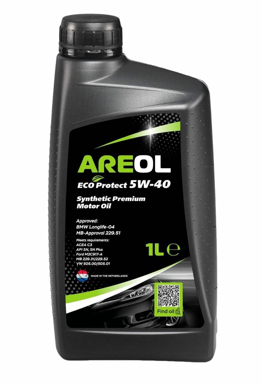 Areol eco protect 5w40 (1l)_масло моторное! синт.\acea c3, api sn/cf, vw 505.00/505.01, mb 229.51, areol, 5w40ar060