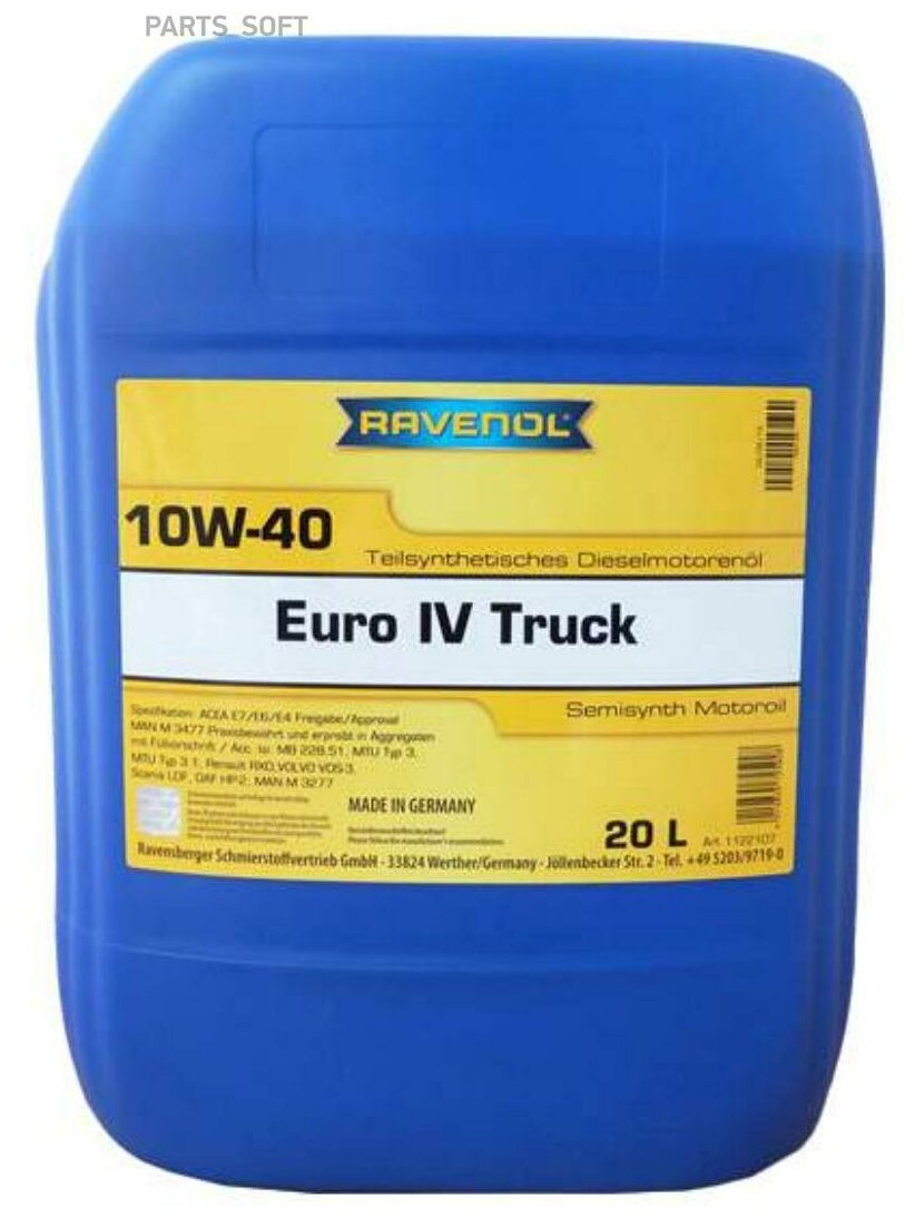 RAVENOL 1122107-020-01-999 Моторное масло RAVENOL Euro IV Truck SAE 10W-40 (20л) new