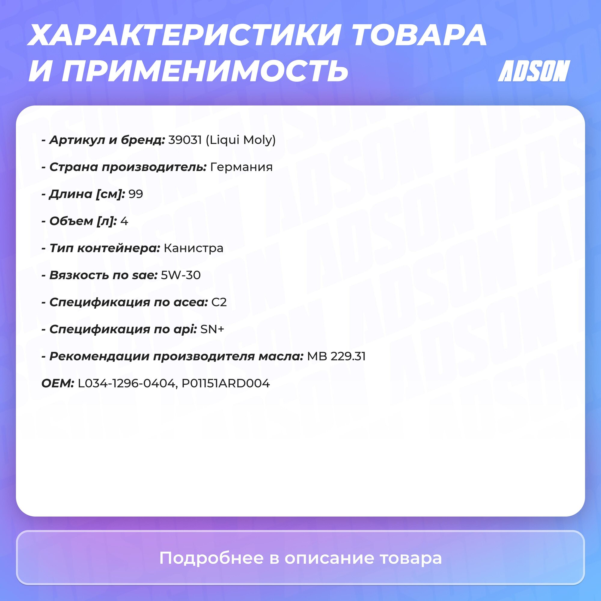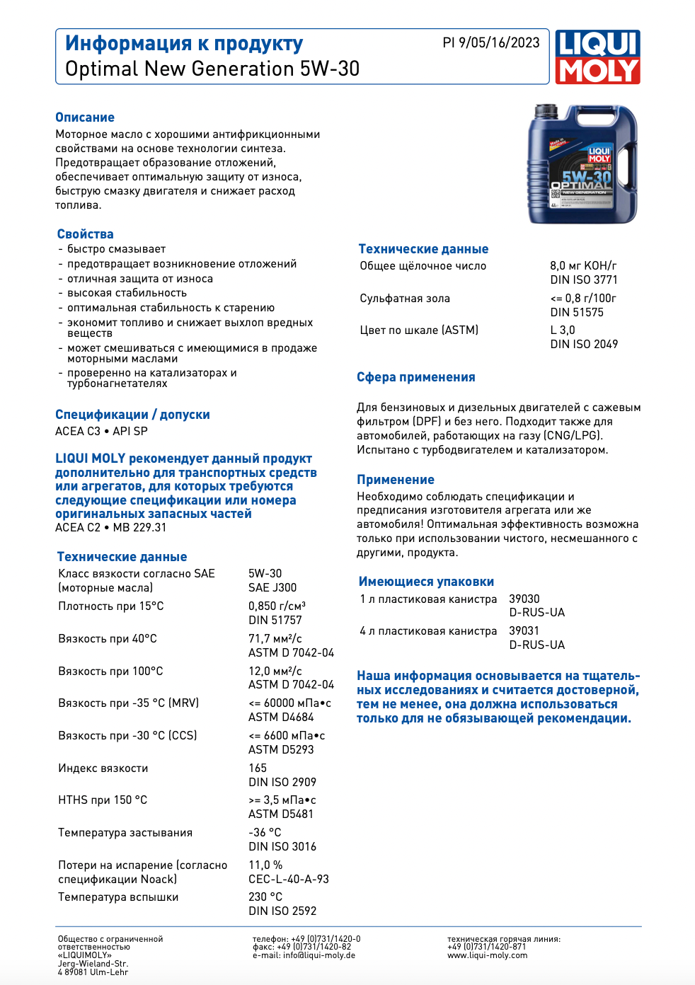 Сохранить39031 LiquiMoly НС-синт. мот.масло Optimal New Generation 5W-30 SN Plus C2/C3 (4л) интересное: