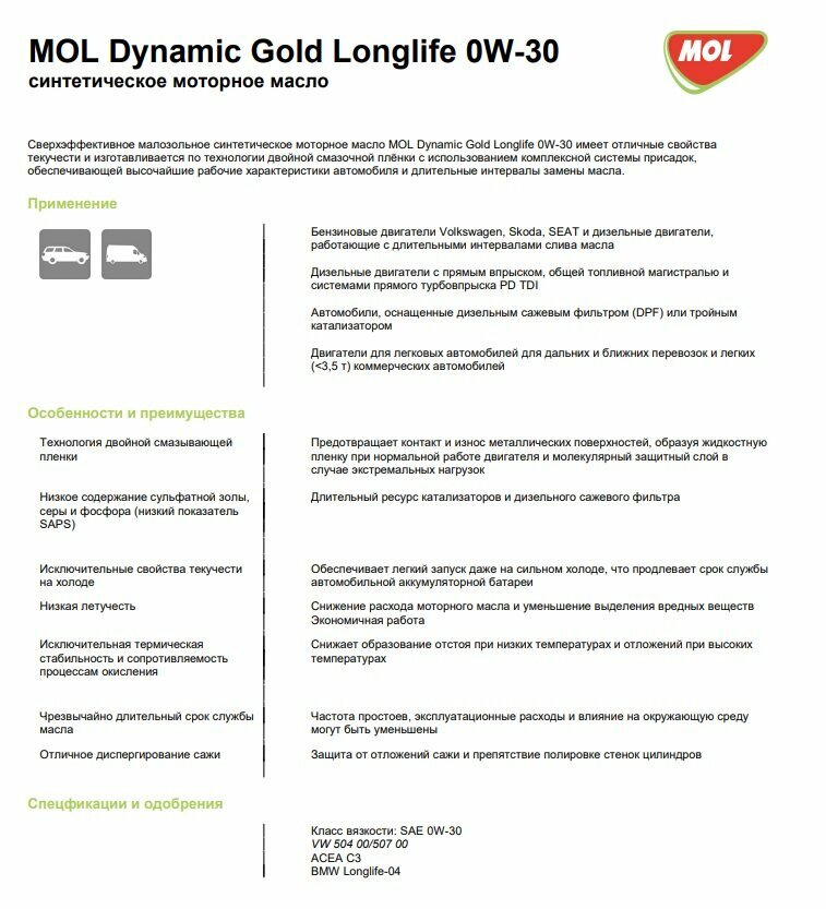 Ниже Вы можете прочитать отзывы на MOL Масло Моторное Mol Dynamic Gold Longlife 0W-30 Синтетическое 4 Л 13303070, ознакомится с подробными характеристиками, посмотреть интересные обзоры и фотографии на MOL Масло Моторное Mol Dynamic Gold Longlife 0W-30 Синтетическое 4 Л 13303070.