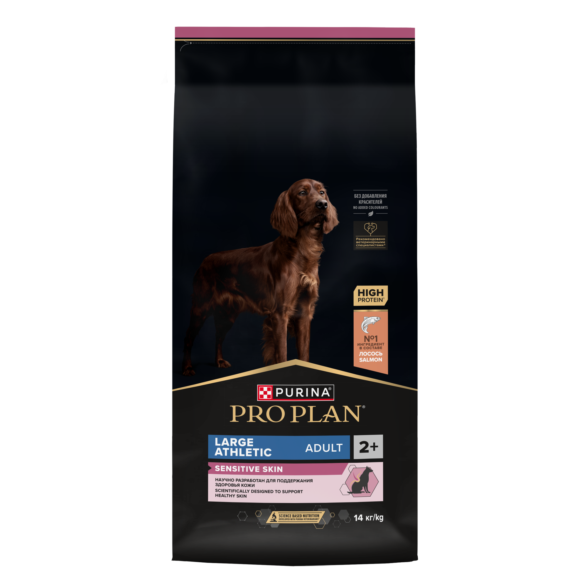 Pro Plan Large Adult Athletic для крупных собак атлетического телосложения с чувствительной кожей Лосось, 14 кг.