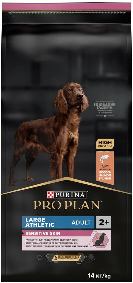 Pro Plan Large Adult Athletic для крупных собак атлетического телосложения с чувствительной кожей Лосось, 14 кг.