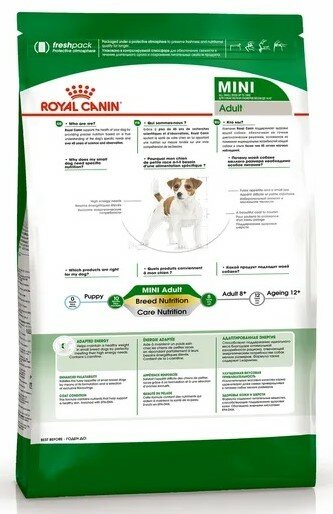 Корм Royal Canin для взрослых собак малых пород: до 10 кг, 10 мес. - 8 лет, Mini Adult, 4 кг