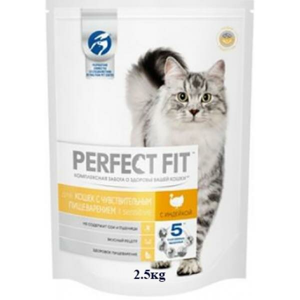 Купить Perfect fit Сухой корм для чувствительных кошек, с индейкой (PERFECT FIT Sensitive), 2.5кг