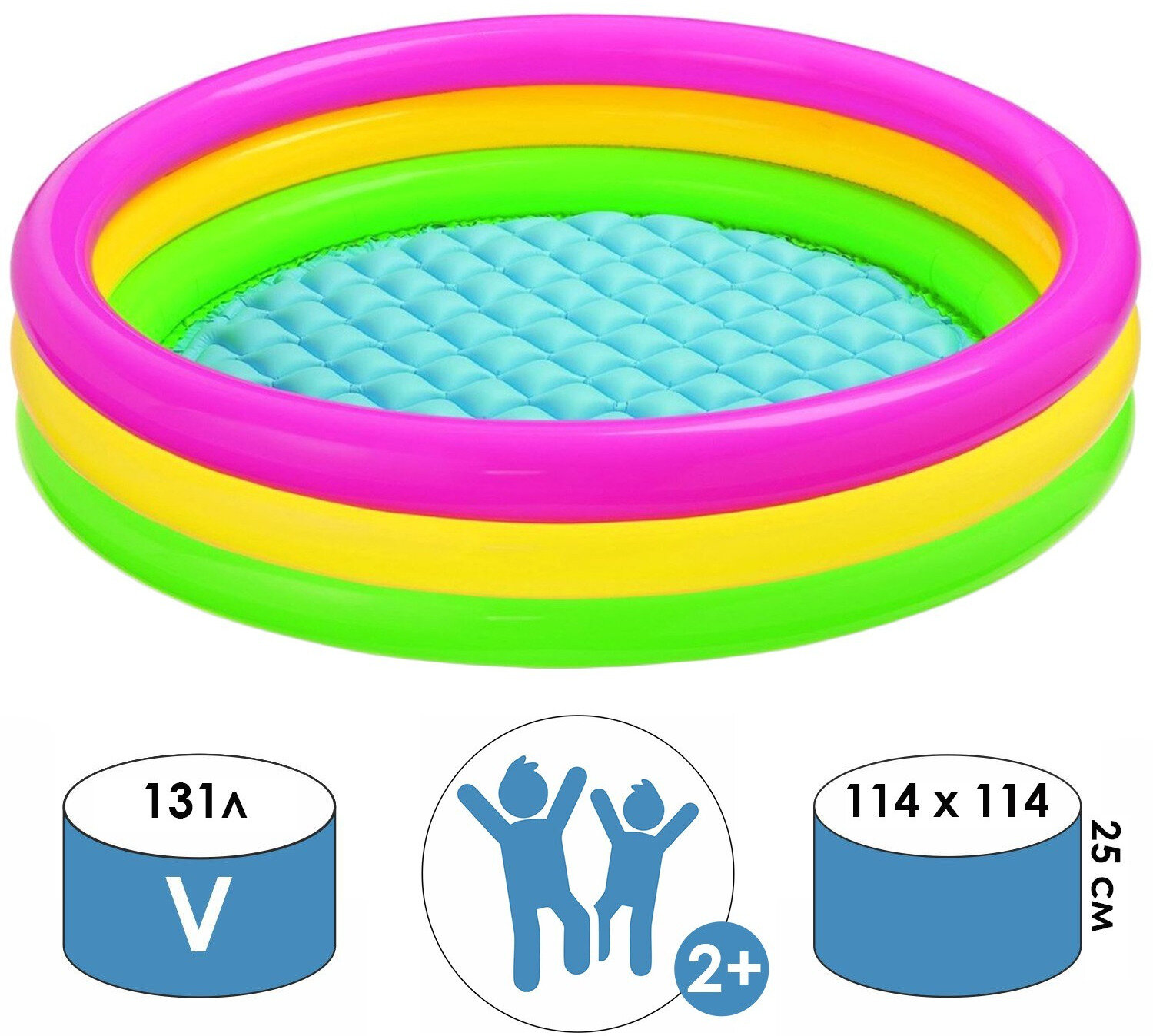 Бассейн "Радуга" с надувным дном 114*25 см, 131 л, от 3-х лет, INTEX