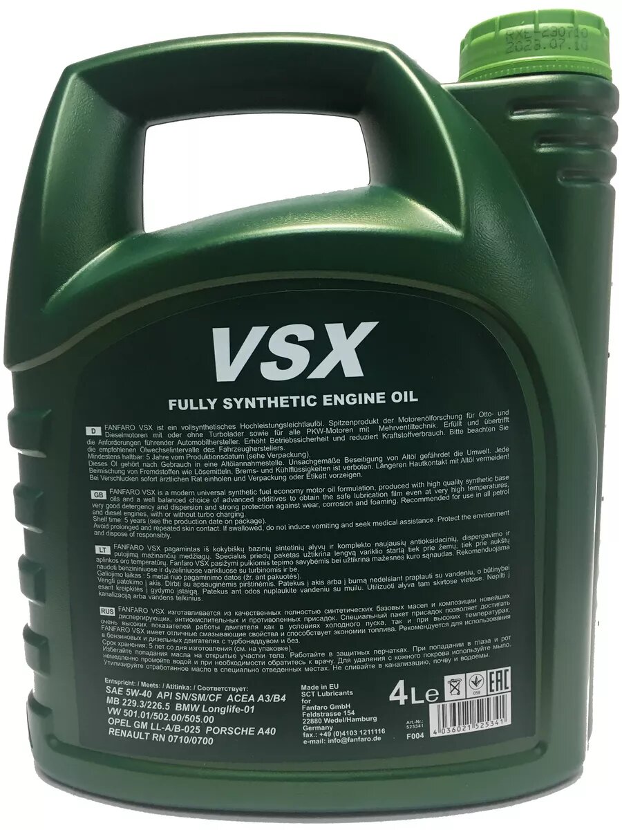 Купить Синтетическое моторное масло FANFARO VSX 5W-40, 4 л, 4 кг
