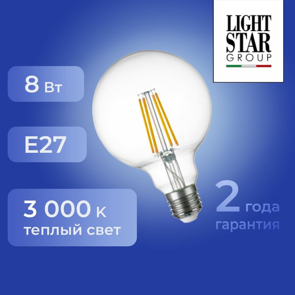 933102 Лампа светодиодная G95 Е27 8W 3000K диммируемость Lightstar, LED