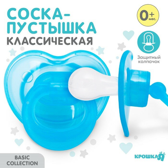 Пустышка прозрачная, классическая с колпачком "Крошка Я", от 0 мес., цвет голубой,