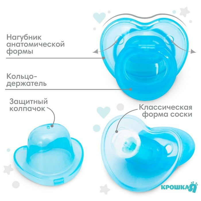 Пустышки и аксессуары Крошка Я Пустышка прозрачная, классическая с колпачком "Крошка Я", от 0 мес., цвет голубой