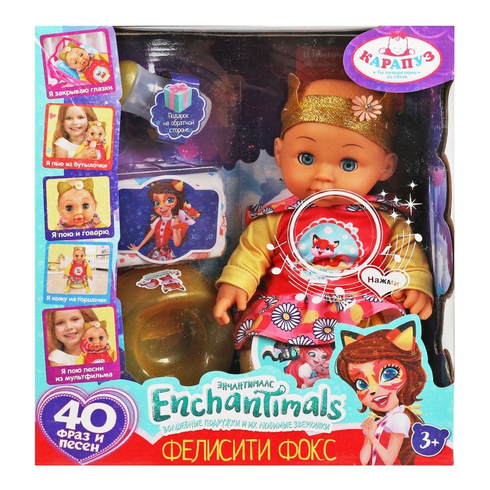 Купить Пупс Энчантималс Фелисити Фокс 30 см. пьет, писает, 40 фраз Карапуз Y30HDS-DP-FOX-EN-RU