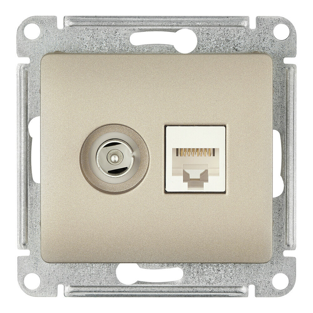 Купить Розетка компьютерная + телевизионная 2-м Glossa RJ45 кат.5E + TV механизм титан SchE GSL000489