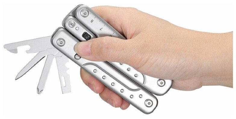 | Отзыв: | Довольно удобный мульт.Жесткая пружина на выходе инструмента,что дает понимания качества и надежности.Понравился лайнер лок на ноже,как и сама заточка клинка.Крупные ножницы,которые уверенно стрегут.Но,самое главное - это линейка,которой небыло на других моих мультах.Очень удобно,когда все под рукой,все в одном инструменте. |