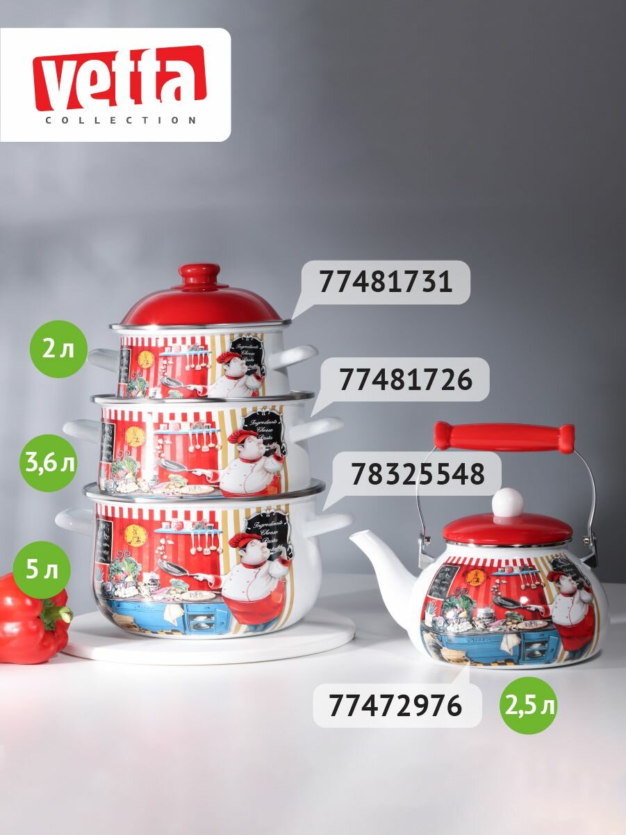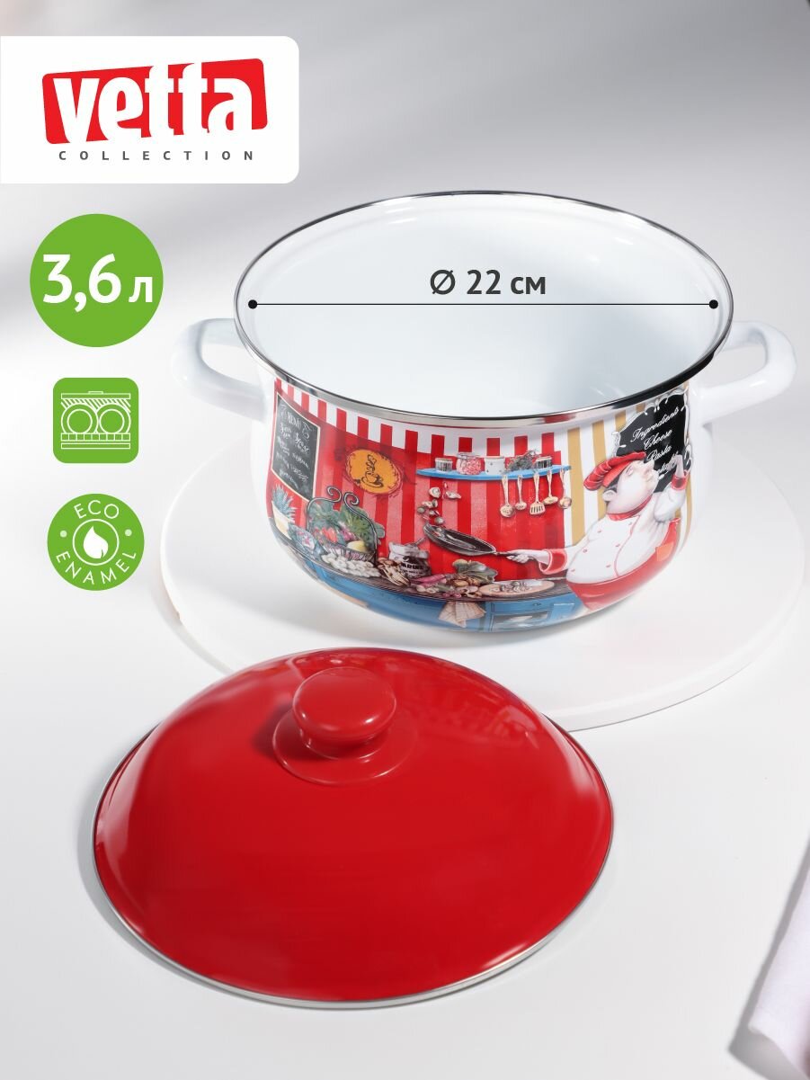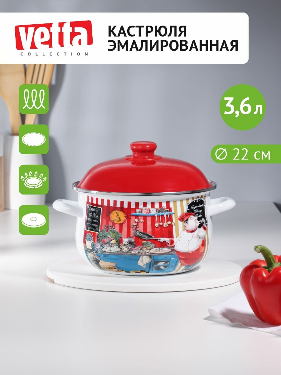 Кастрюля эмалированная с крышкой Vetta Повар, 3,6л, для индукционной плиты
