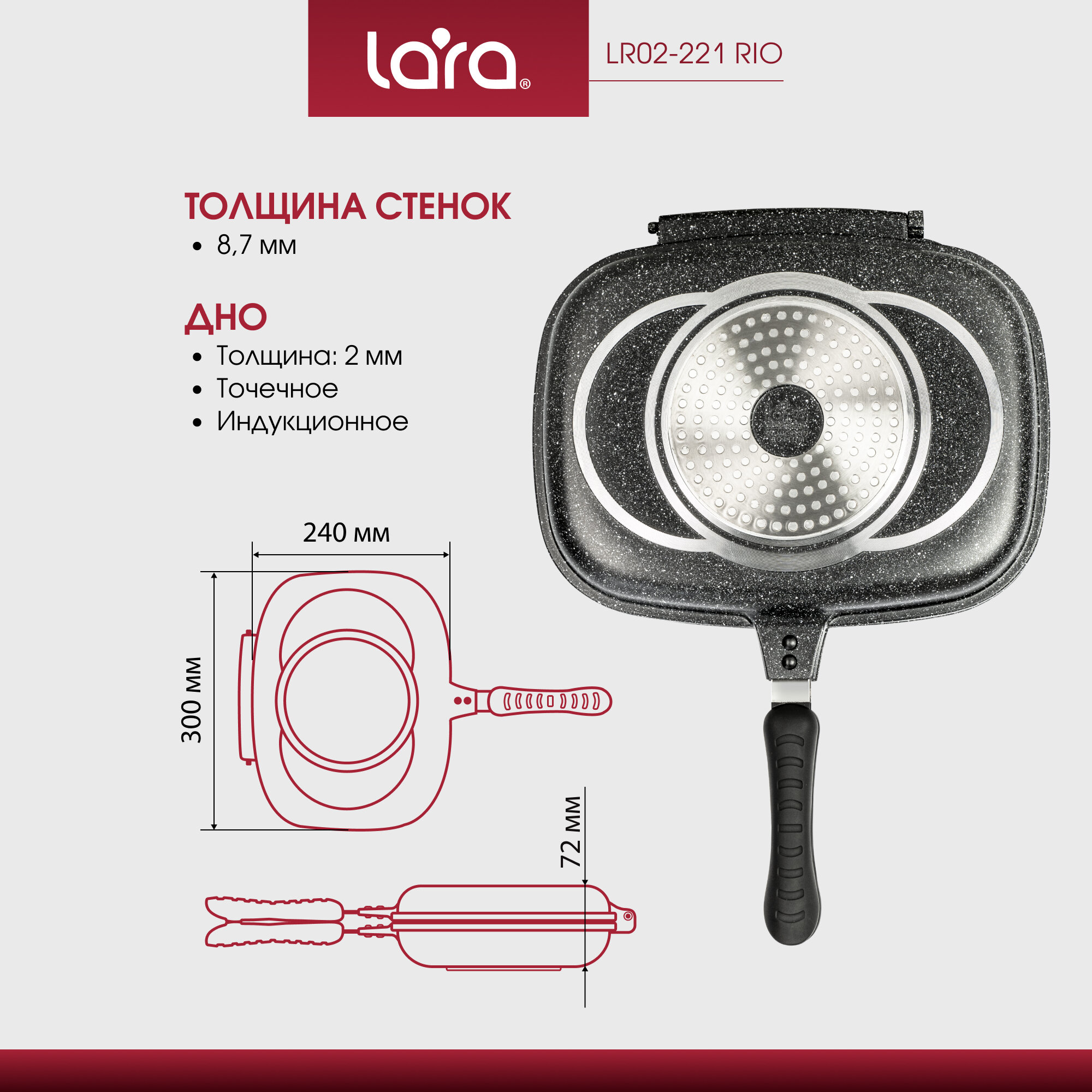 Купить LR02-221 Сковорода-гриль LARA серия Rio 30см, двойная, мрамор, капсулированное индукционное дно