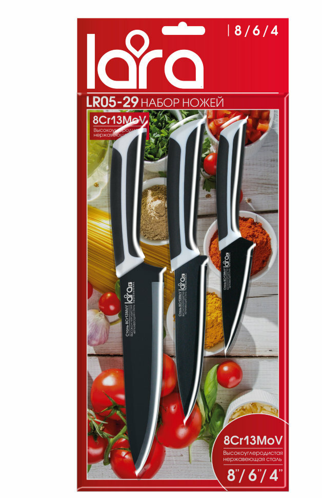 Набор ножей LARA LR 05-29 (3 предмета), полный блистер, черное керамич.покрытие