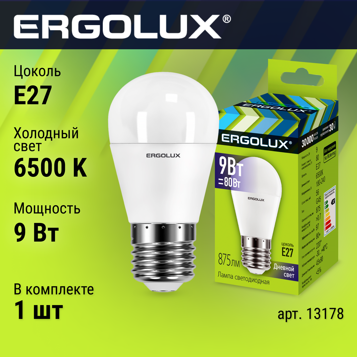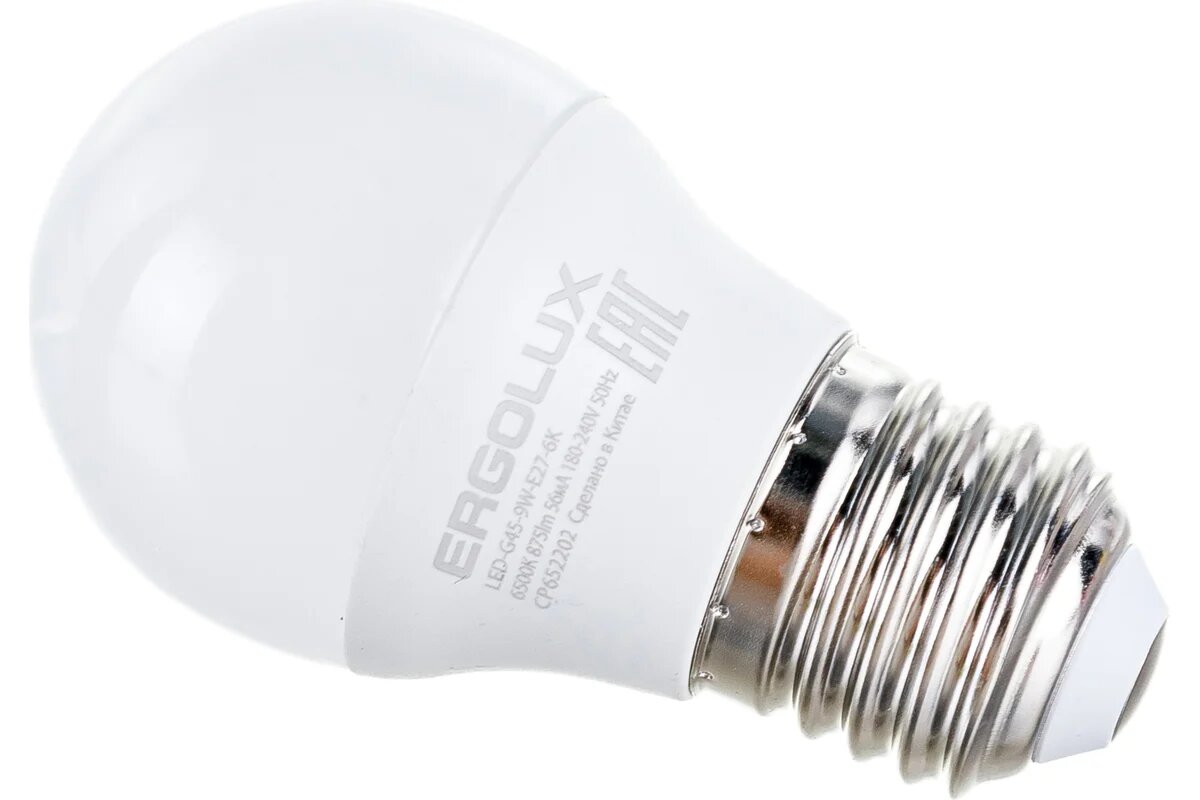 Электрическая светодиодная лампа Ergolux LED-G45-9W-E27-6K Шар 9Вт E27 6500K 172-265В 13178