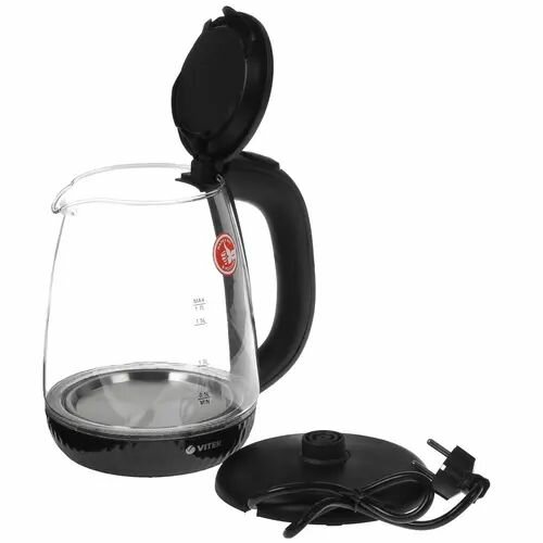 Чайник электрический Vitek VT-7074, 2200Вт, прозрачный и черный