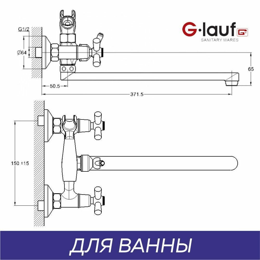Смеситель для ванны и умывальника 1/2 кер Glauf QFR7-A827
