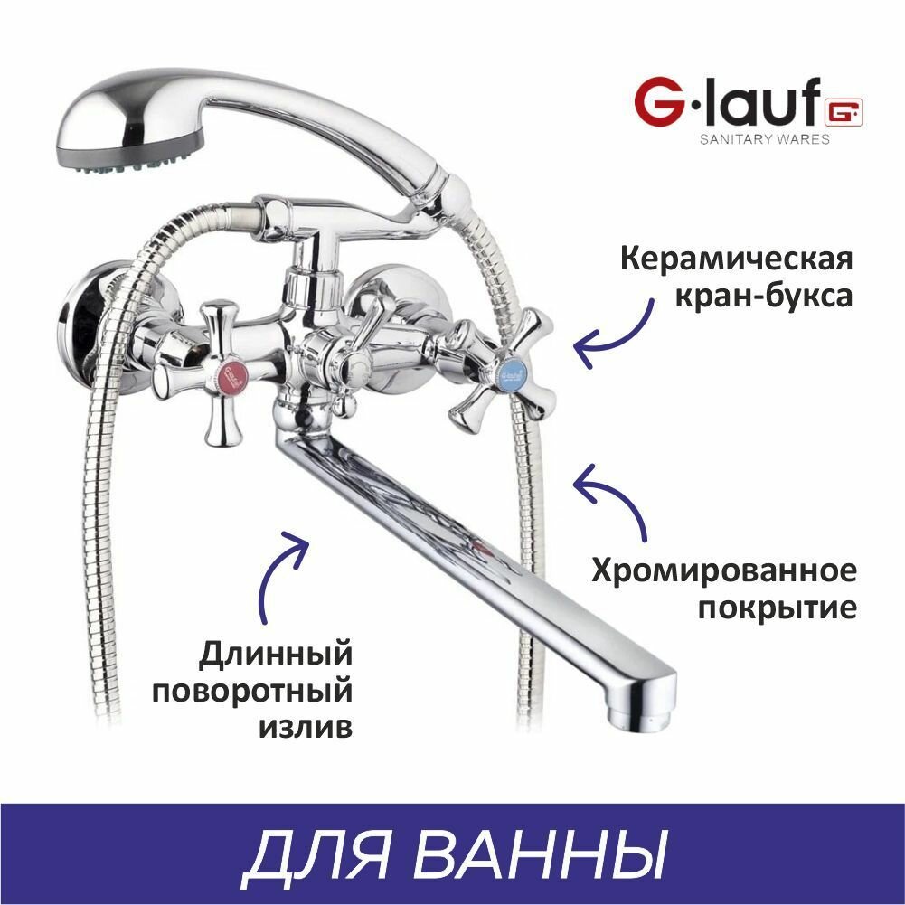 Купить Смеситель для ванны с душем двухвентильный, кран в ванную G.lauf QFR7-A827, хром