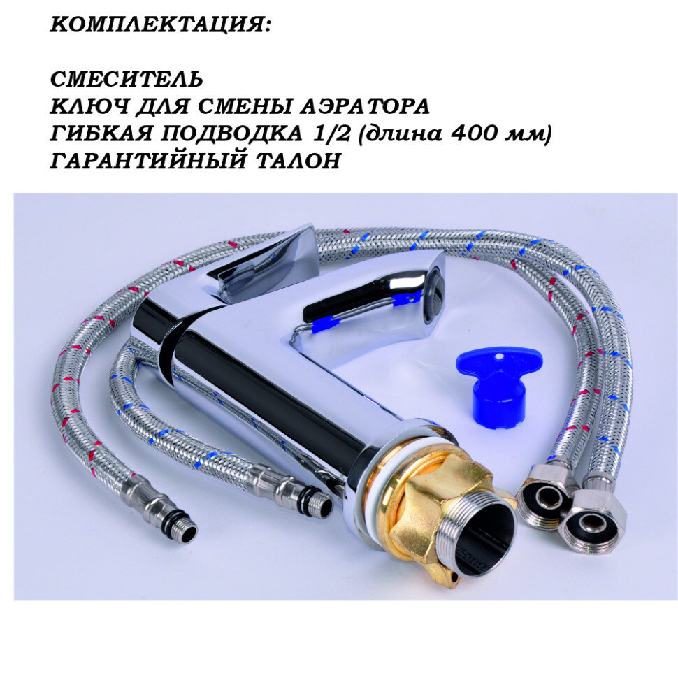 | Комплектация | Смеситель, гибкая подводка, аэратор, крепления |