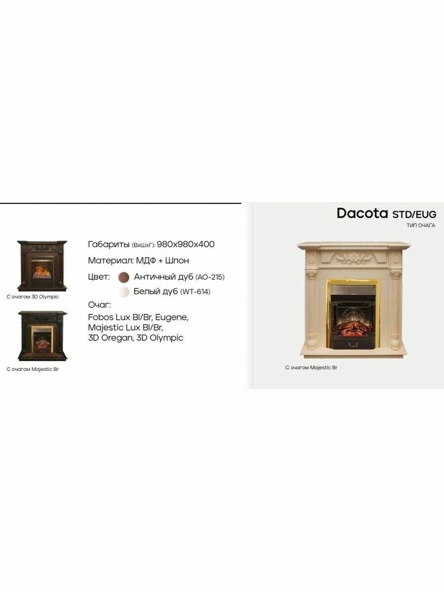 Электрокамин RealFlame Dacota с очагом Fobos Lux Black Античный дуб