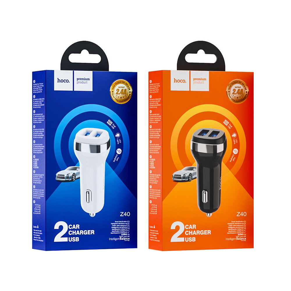 Автомобильное заряд. устр. Hoco Z40 2USB 2.4A черный