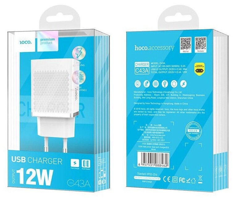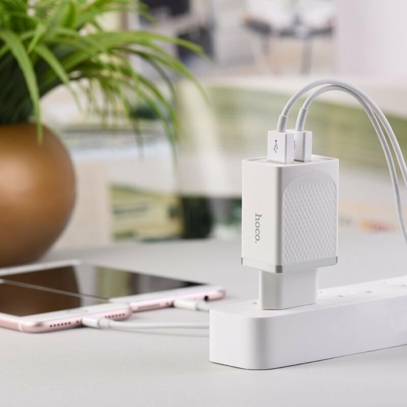 Сетевое зарядное устройство (СЗУ) Hoco C43A (2 USB) 2.4 А, белый