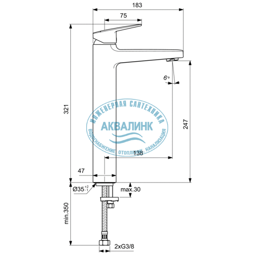 Высокий смеситель на столешницу Ideal Standard Ceraplan 24,7см, арт. BD236AA, неповоротный излив, без донного клапана, термостат, холодный старт
