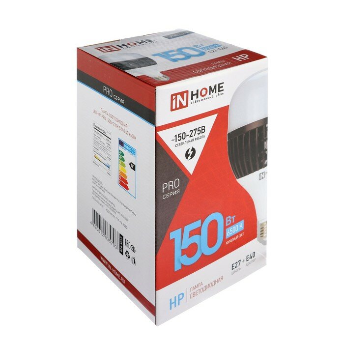 Лампочка светодиодная LED-HP-PRO 150Вт 6500К, свет холодный белый, E27 13500 лм 150-275В с адаптером E40, IN HOME 4690612035703 (1 шт.)