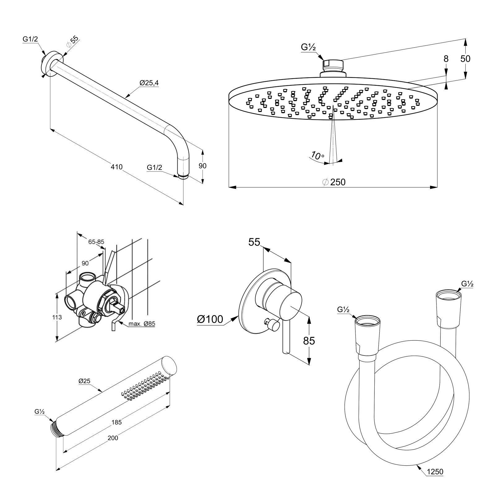 | Комплектация | ручной душ / верхний душ / шланг / кронштейн / держатель лейки |