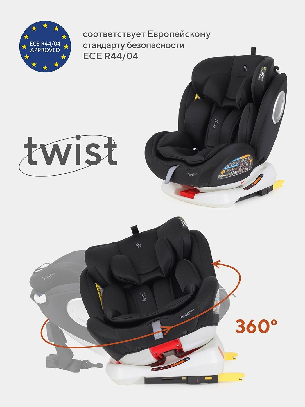 Автокресло детское Rant basic Twist арт. YC06, группа 0+/1/2/3 от 0 до 12 лет вес 0-36 кг рост 40-145 см, Black