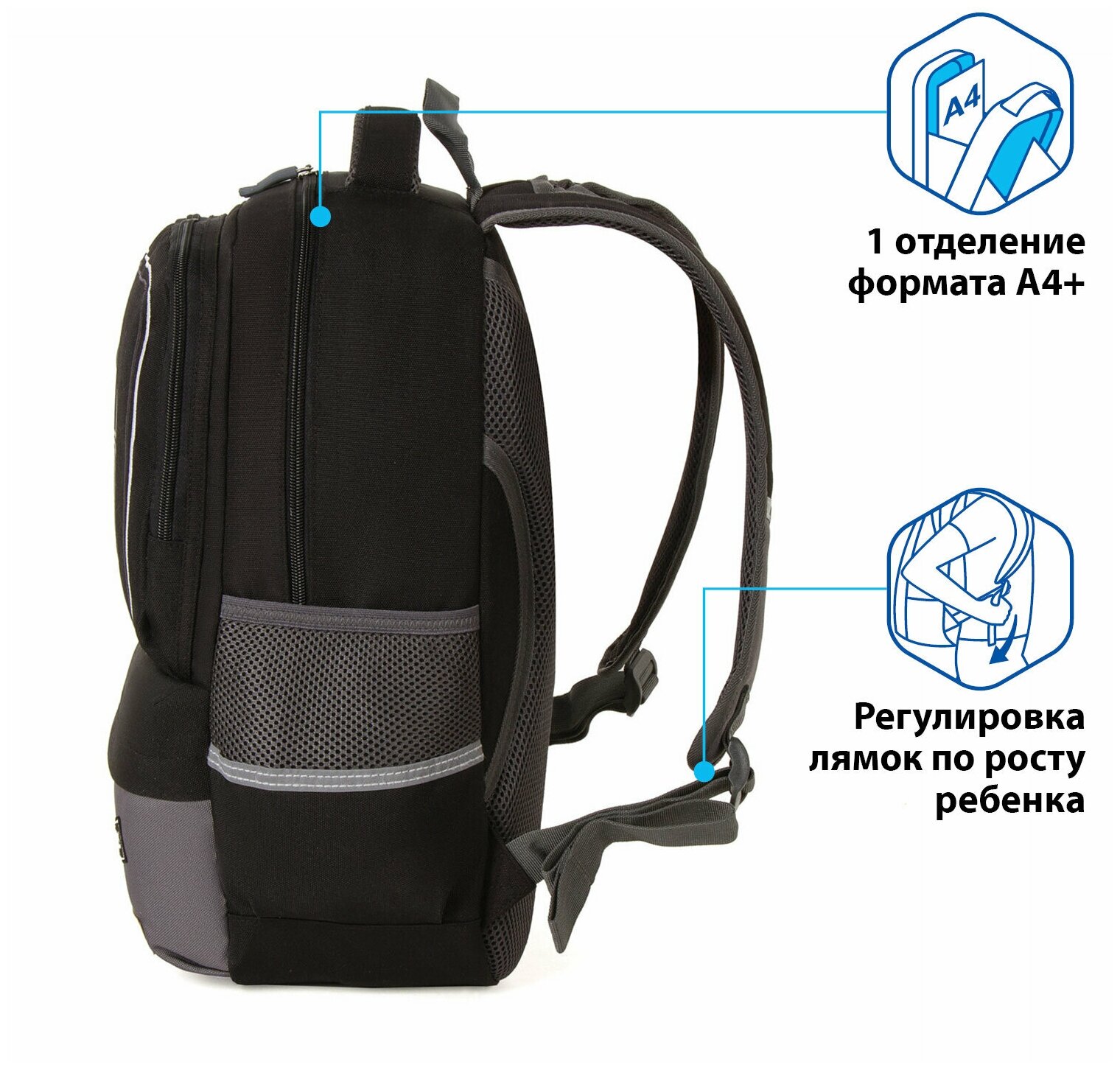 Рюкзак школьный для мальчика, ранец для подростка спортивный, портфель детский в школу, 1 отделение и 5 карманов, Brauberg Claws,