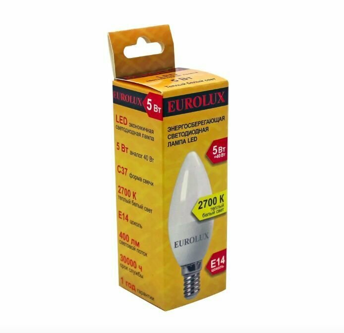 Лампа светодиодная Eurolux 76/2/1, E14, C37, 5Вт, 2700 К интересное:
