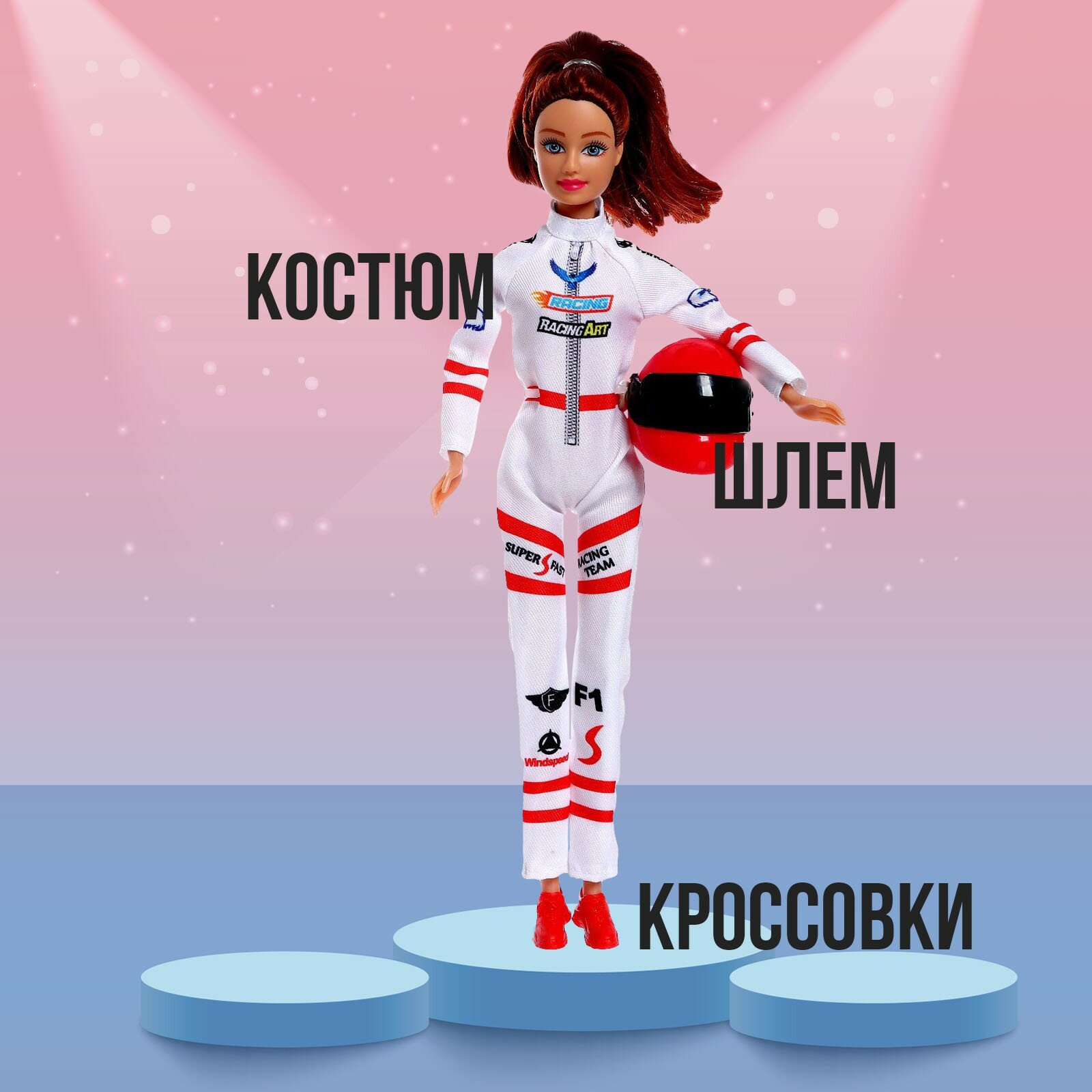 Купить Кукла-модель «Гонщица», с аксессуарами, цвет голубо-розовый
