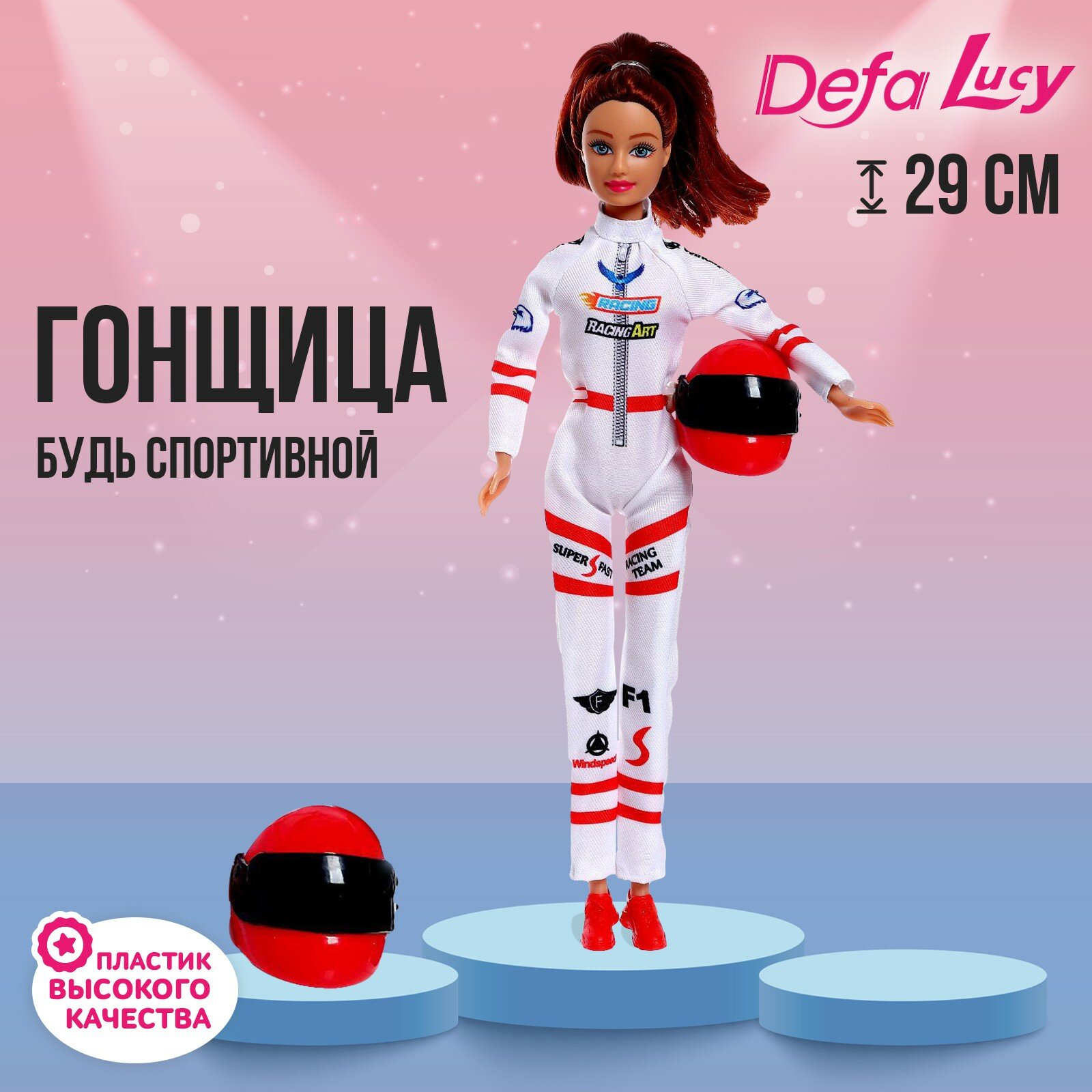Модельные куклы Defa Lucy Кукла-модель «Гонщица», с аксессуарами, цвет голубо-розовый