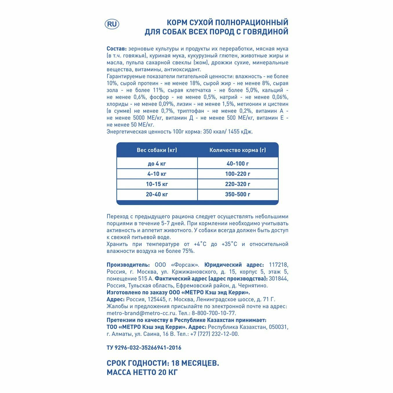 20КГ СУХ корм Д/СОБ говяд ARO интересное: