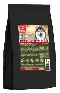 BLITZ HOLISTIC GRAIN FREE ADULT BEEF & WHITE FISH беззерновой для взрослых собак всех пород с говядиной и белой рыбой (0,5 кг)