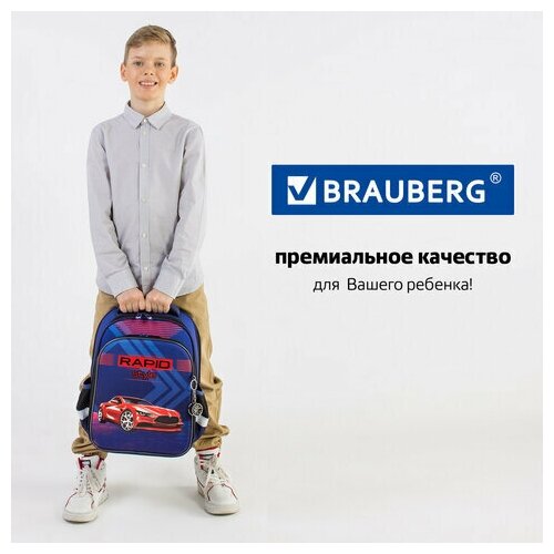 Ранец / рюкзак / портфель школьный для мальчика первоклассника Brauberg Quadro, 3 отделения, с брелком, Rapid style, 37х28х18 см