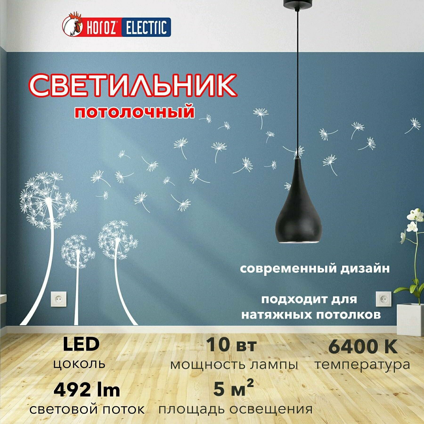 Светильник с/д подвесной, 10W. 6400 К, черный, HL873L HOROZ (020-002-0010) интересное: