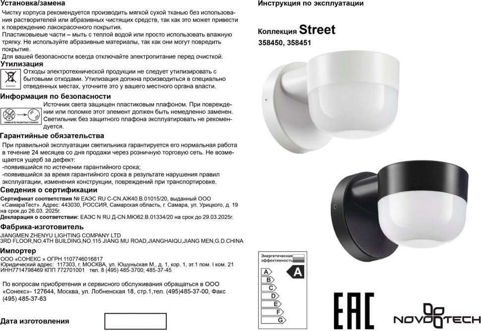 Уличный настенный светодиодный светильник Novotech Street 358451